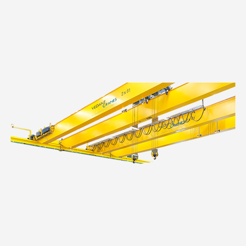 VEDANT Cranes manufactures Double Girder Overhead cranes in SWLs ranging from 1MT to more than 20MT. These cranes can either incorporate standard DEMAG crabs. Double Girder Cranes can be offered for a very large range of spans, large range of heights of lift as well as a large number of speeds. They can also be provided with multiple hoisting trolleys running on the same bridge.